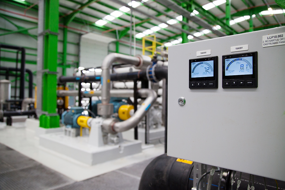 Aksa Reverse Osmosis Facility treats seawater from the Marmara Sea through ultrafiltration, seawater reverse osmosis (SWRO), brackish water reverse osmosis (BWRO), and electrodeionization (EDI) to produce ultrapure water, meeting 65% of Aksa Acrylic Chemistry’s total water demand.