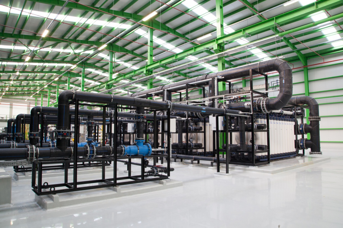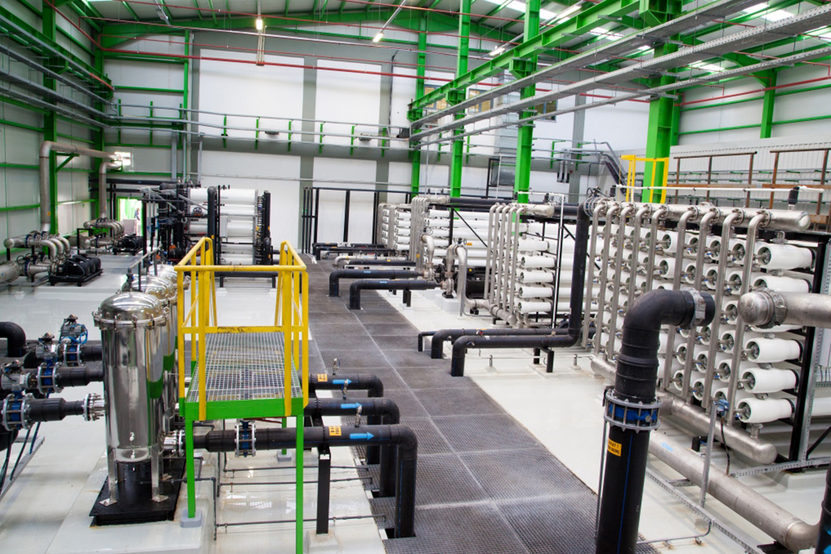 The facility, with a capacity of 400 m³/hr, produces boiler feedwater (BFW) at 134 m³/hr and deionized water at 266 m³/hr.