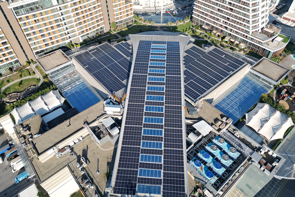 Through collaboration between Akenerji, Akiş, and Akyaşam, two Solar Power Plants (SPP) for self-consumption have been installed on the rooftops of Akasya Mall and Akbatı Mall under the Unlicensed Electricity Generation Regulation. The project encompasses panel assembly, inverter installation, commissioning, maintenance, and operations. The installations have capacities of 724 kWp (Akasya) and 821 kWp (Akbatı) respectively.